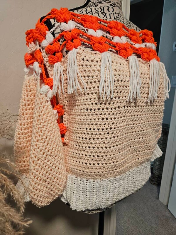 Introducing our delightful 100% Handmade Crochet Oversized Cold Shoulder Sweater! This charming piece features a trendy off-shoulder design that adds a playful touch to your wardrobe. Perfectly sized in Large, it drapes beautifully with a length of approximately 19 inches, making it ideal for layering or wearing solo. Each stitch is crafted with love, ensuring a unique and cozy feel. Embrace comfort and style with this must-have sweater!